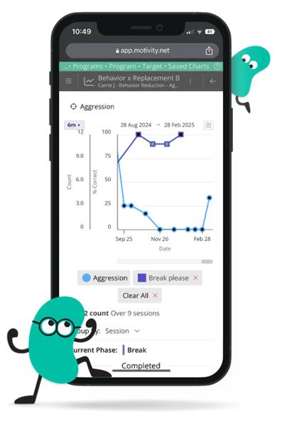 Motivity’s ABA data collection solution is a real-time, customizable platform that lets clinicians capture, view, and analyze behavior data instantly across devices. Real-time allows for viewing program progress and trends without refreshing or administrative lag.